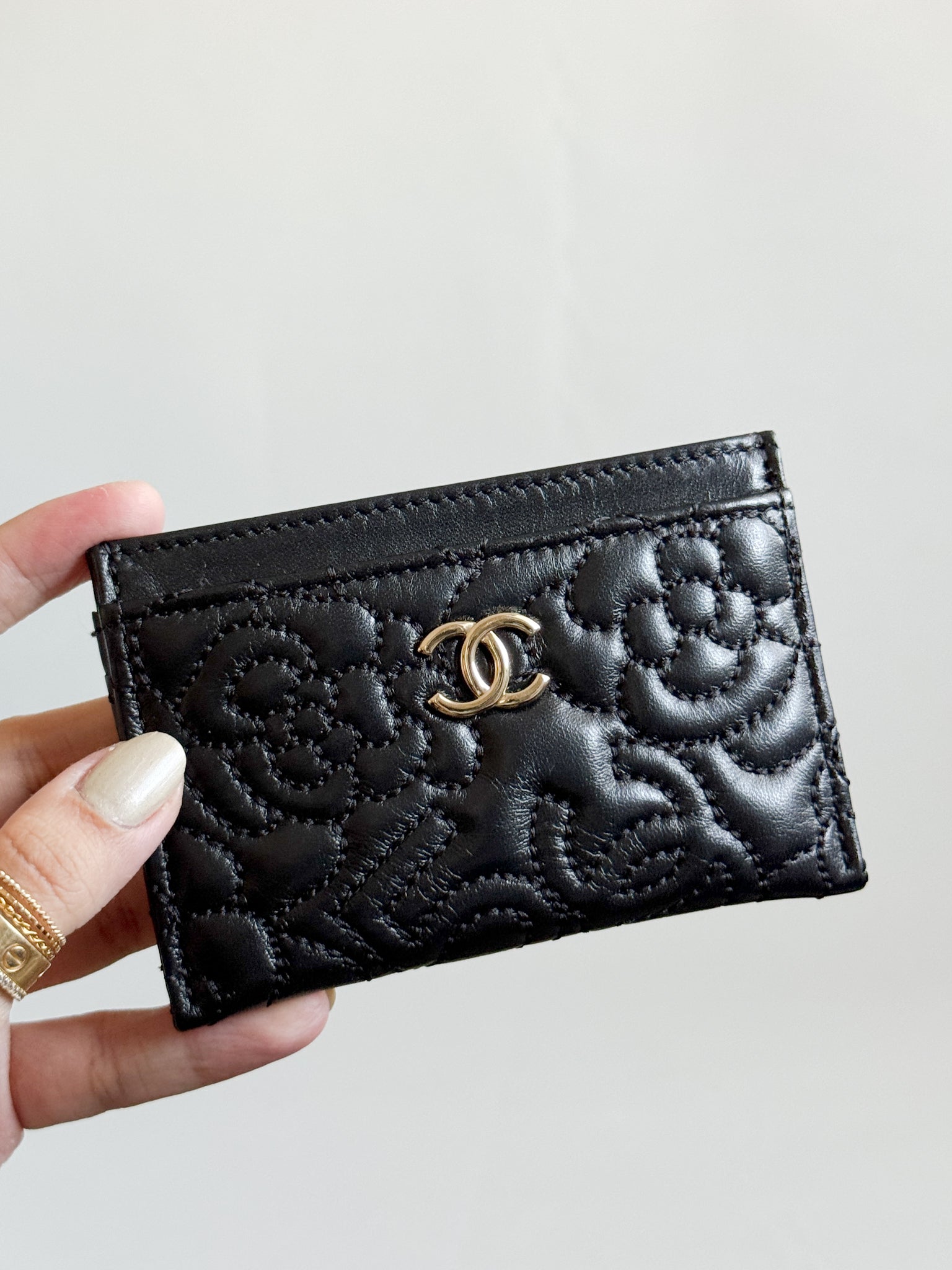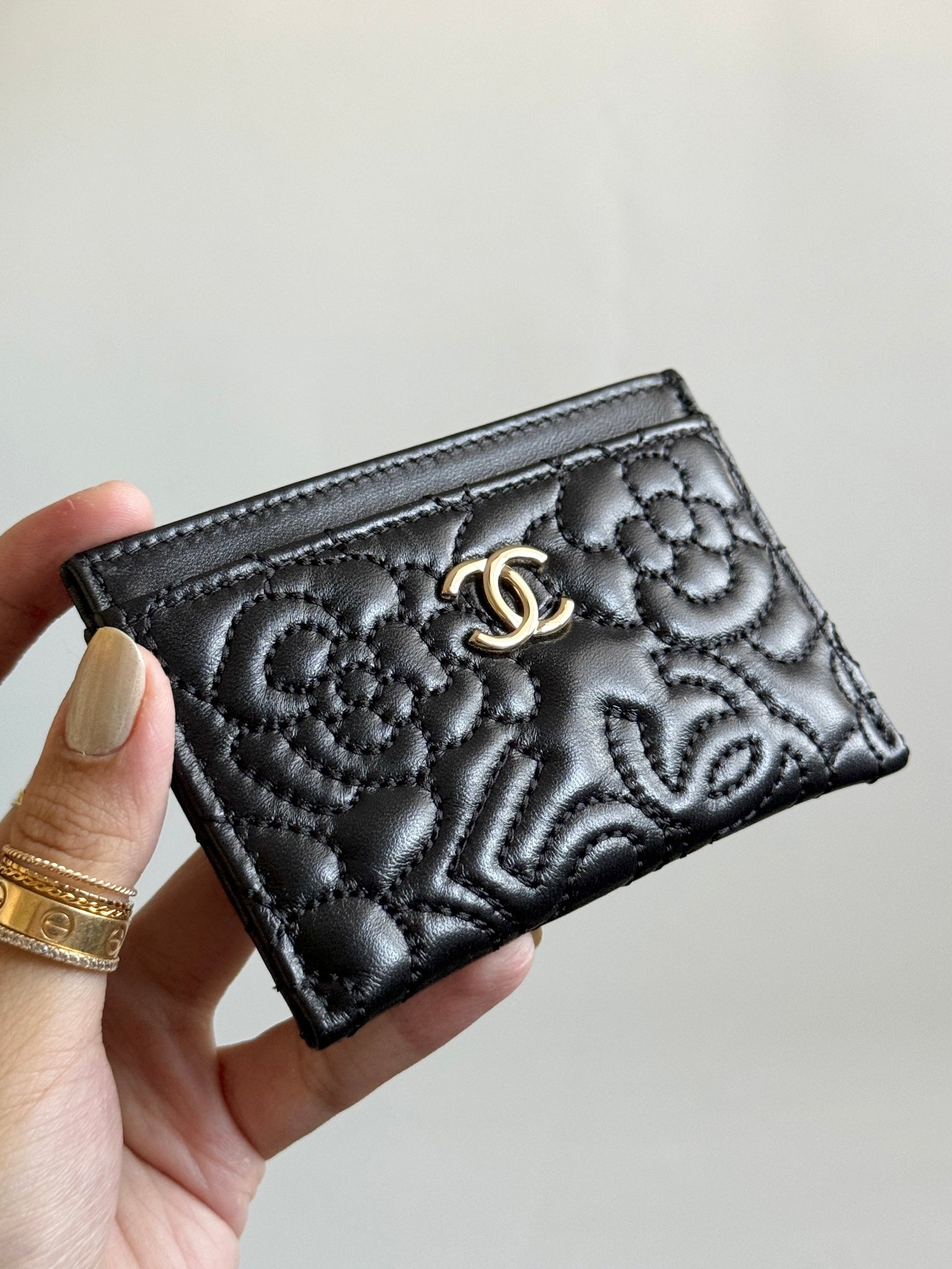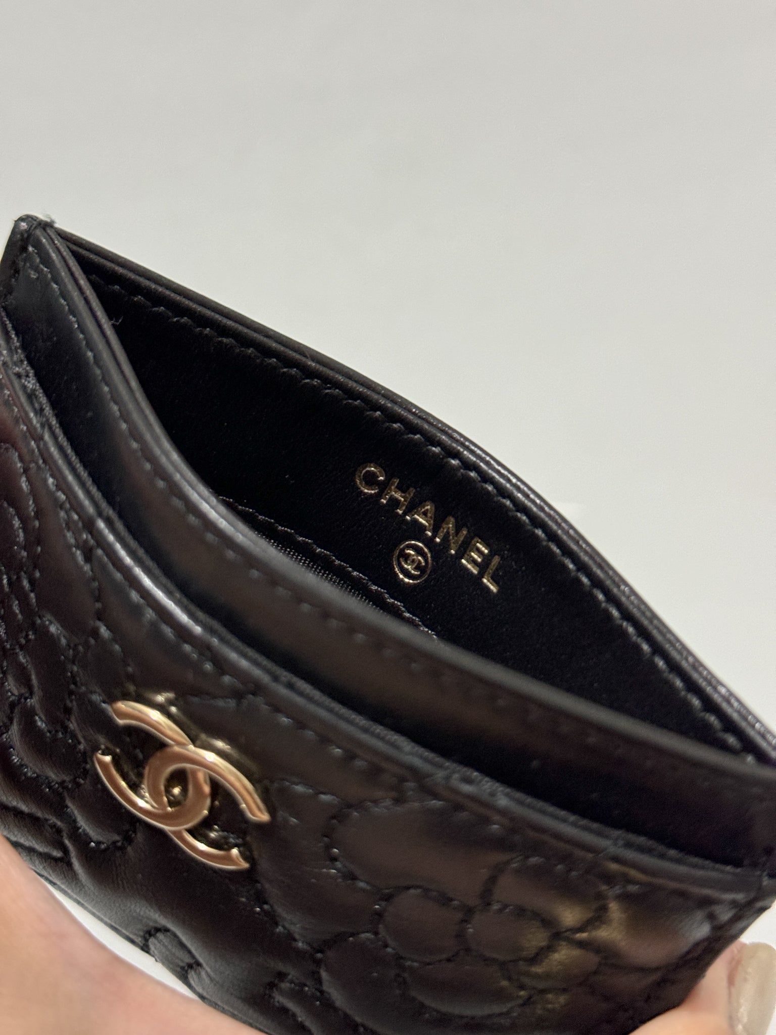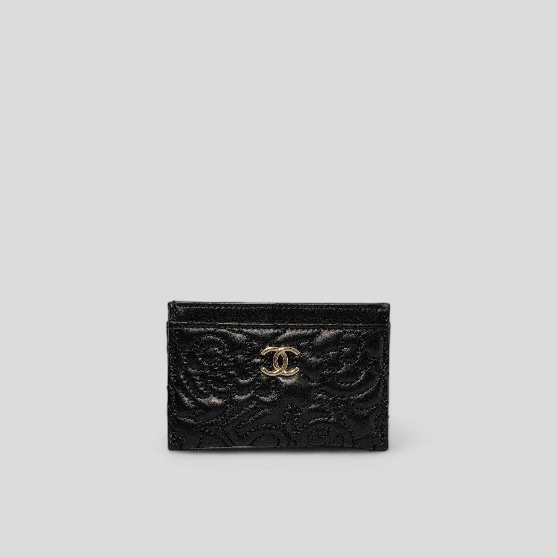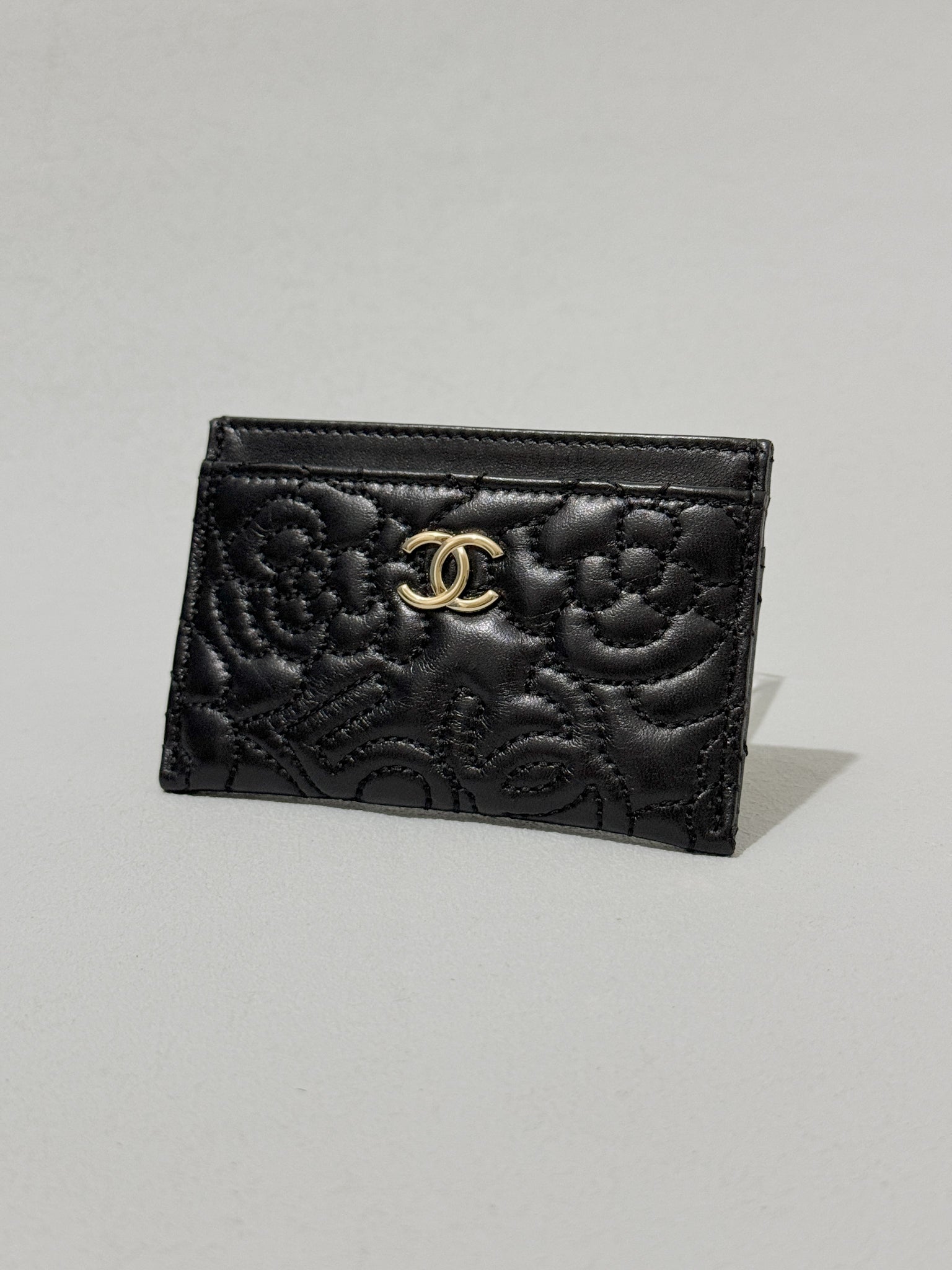 Camellia Black Lambskin Leather Light Gold Hardware Card Case Series 26