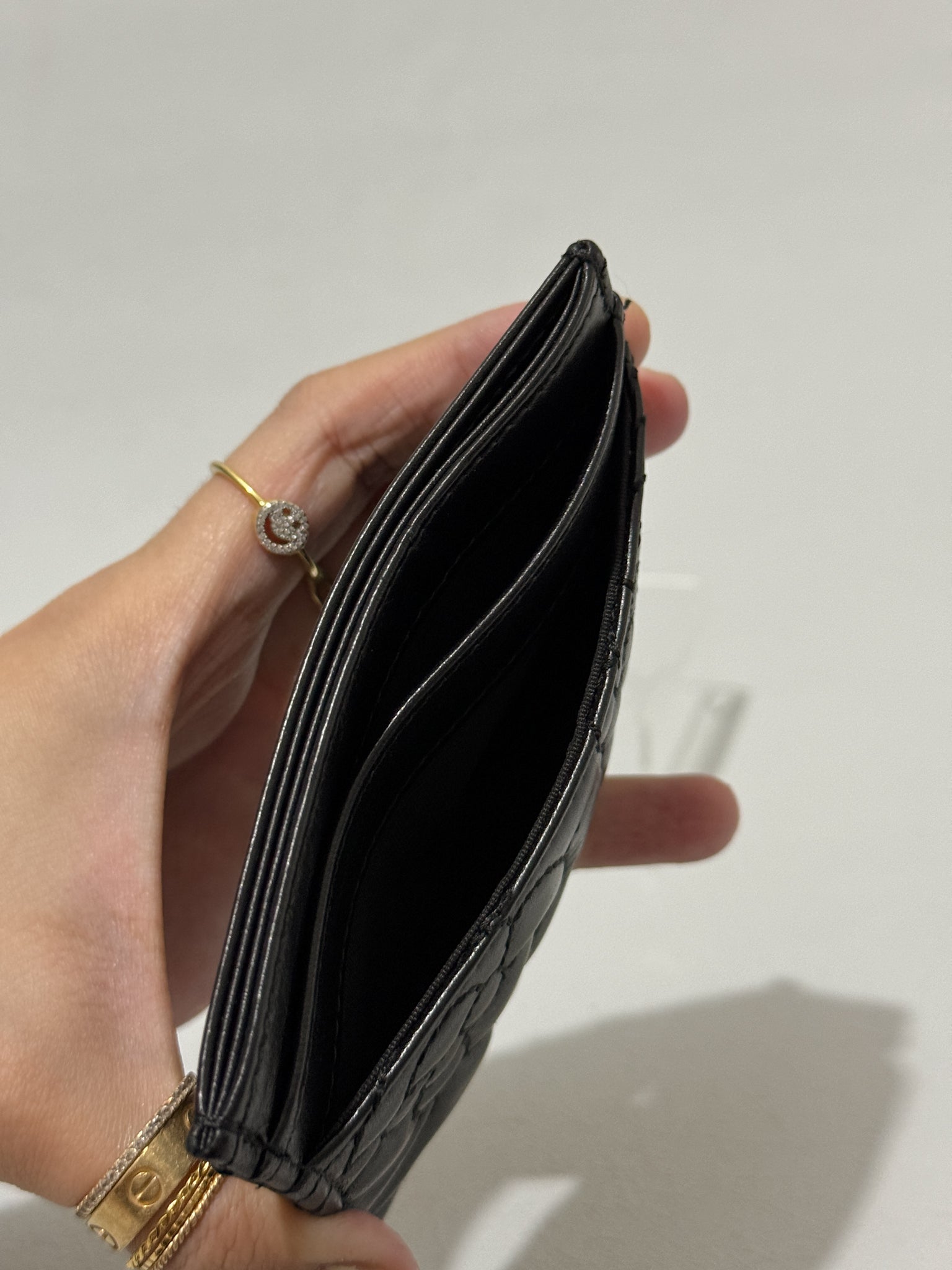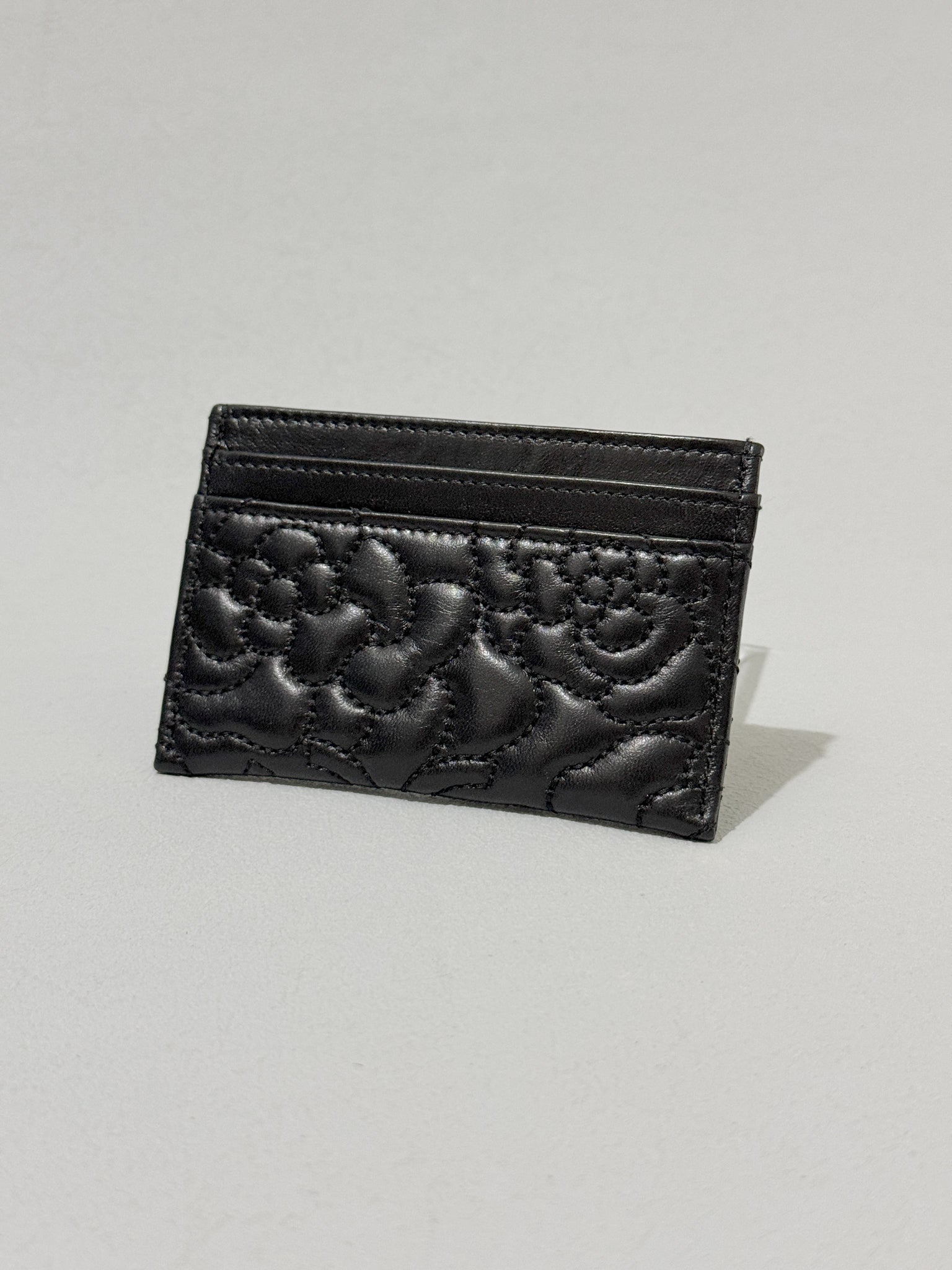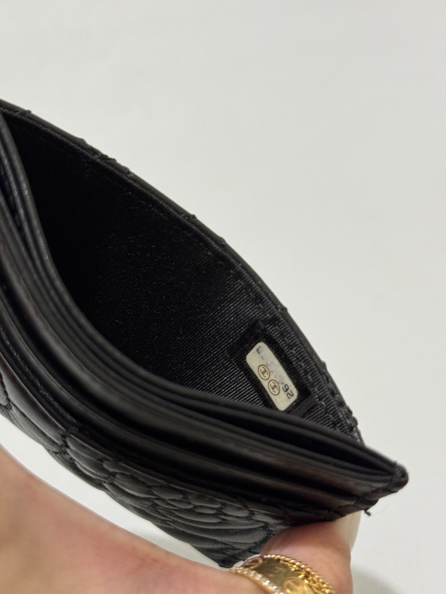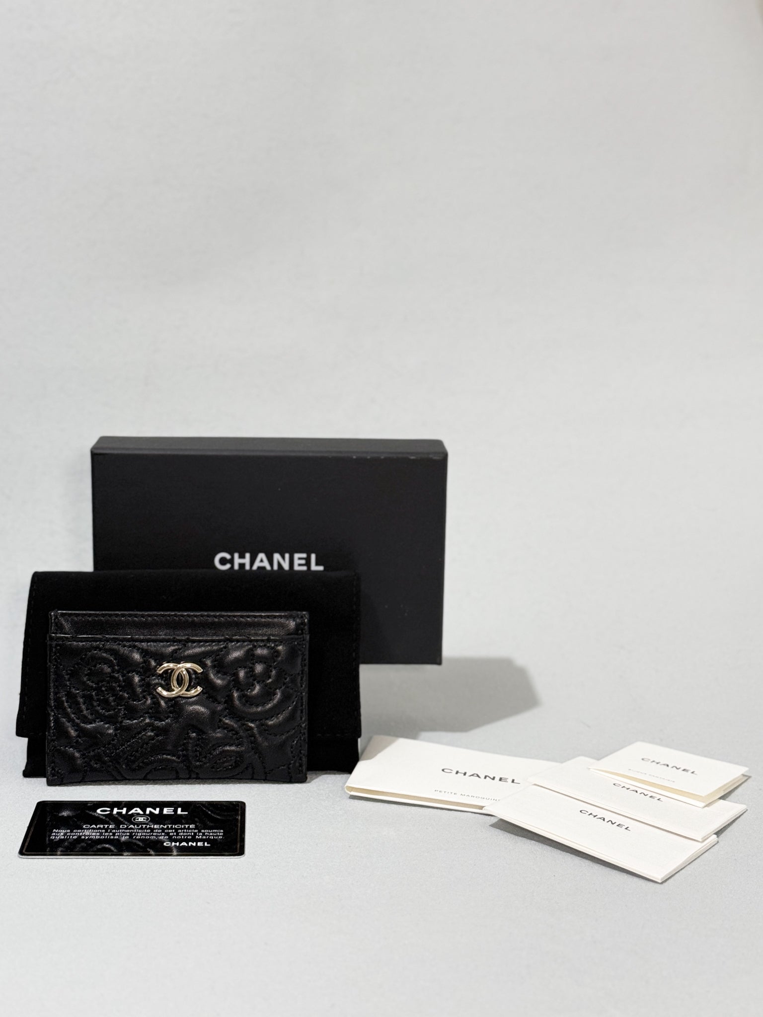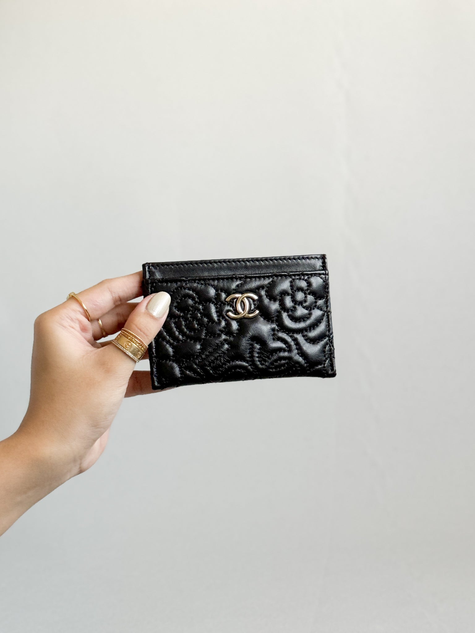 Camellia Black Lambskin Leather Light Gold Hardware Card Case Series 26