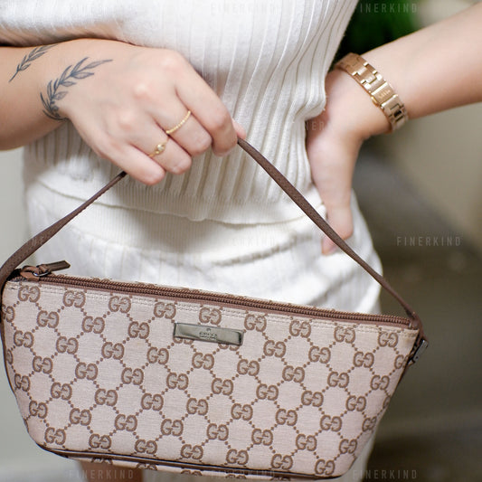 GG Canvas and Light Espresso Leather Boat Pochette Bag