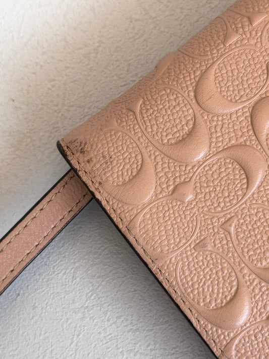 Dusty Rose Pink Embossed Logo Anna Foldover Crossbody Bag