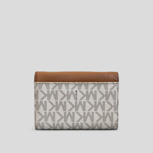 Tan and Off White Wallet on Gold Chain Crossbody Bag
