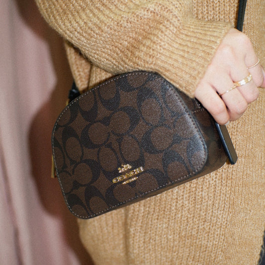 Mini Sierra Handbag in Signature Brown Canvas with Strap
