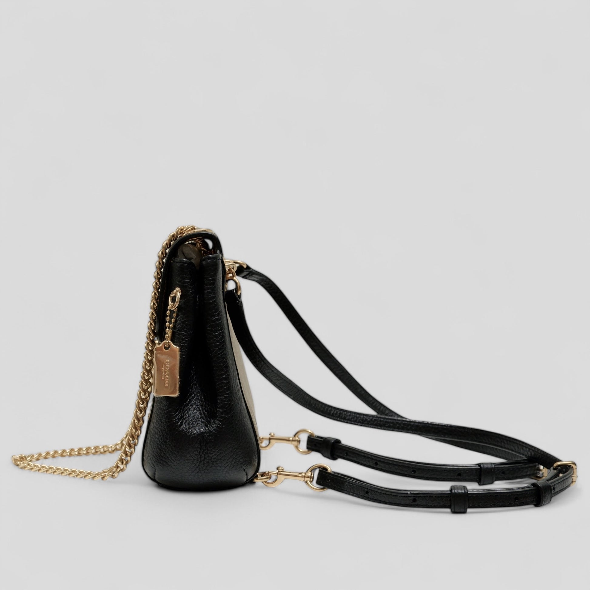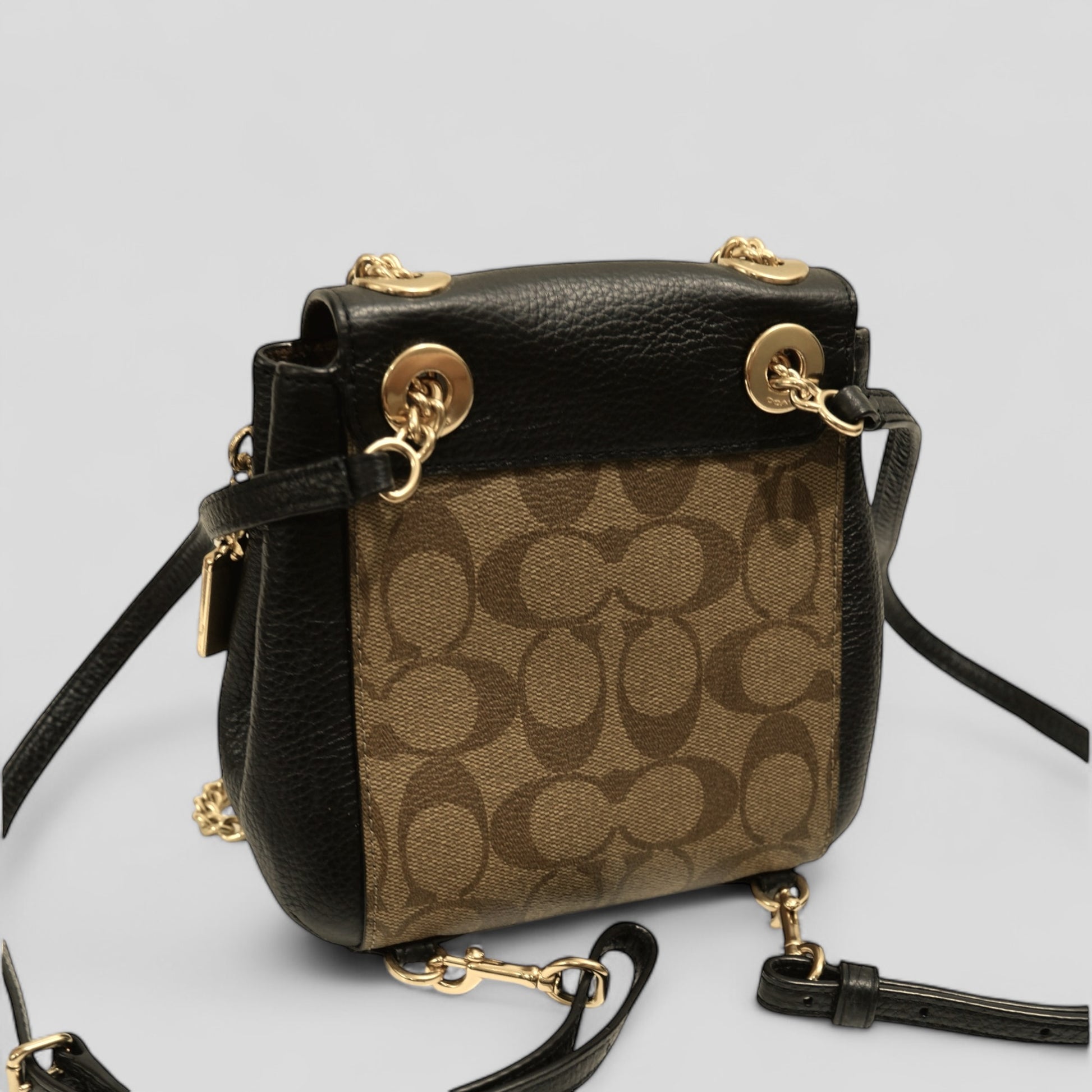 Convertible Mini Backpack in Black and Khaki Signature Canvas