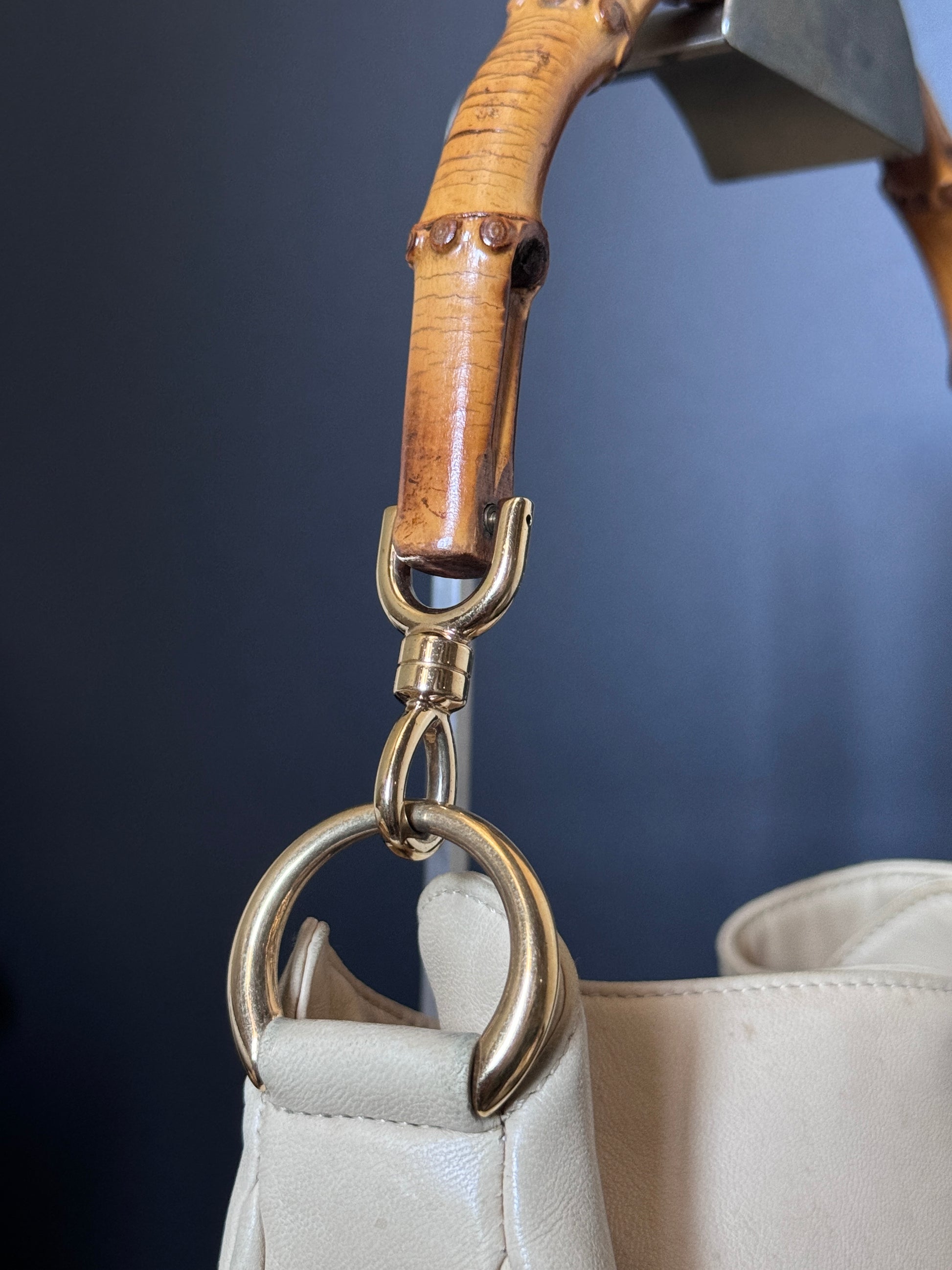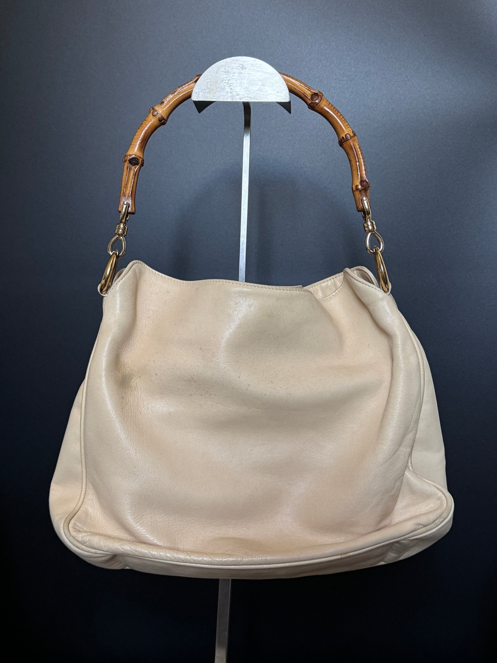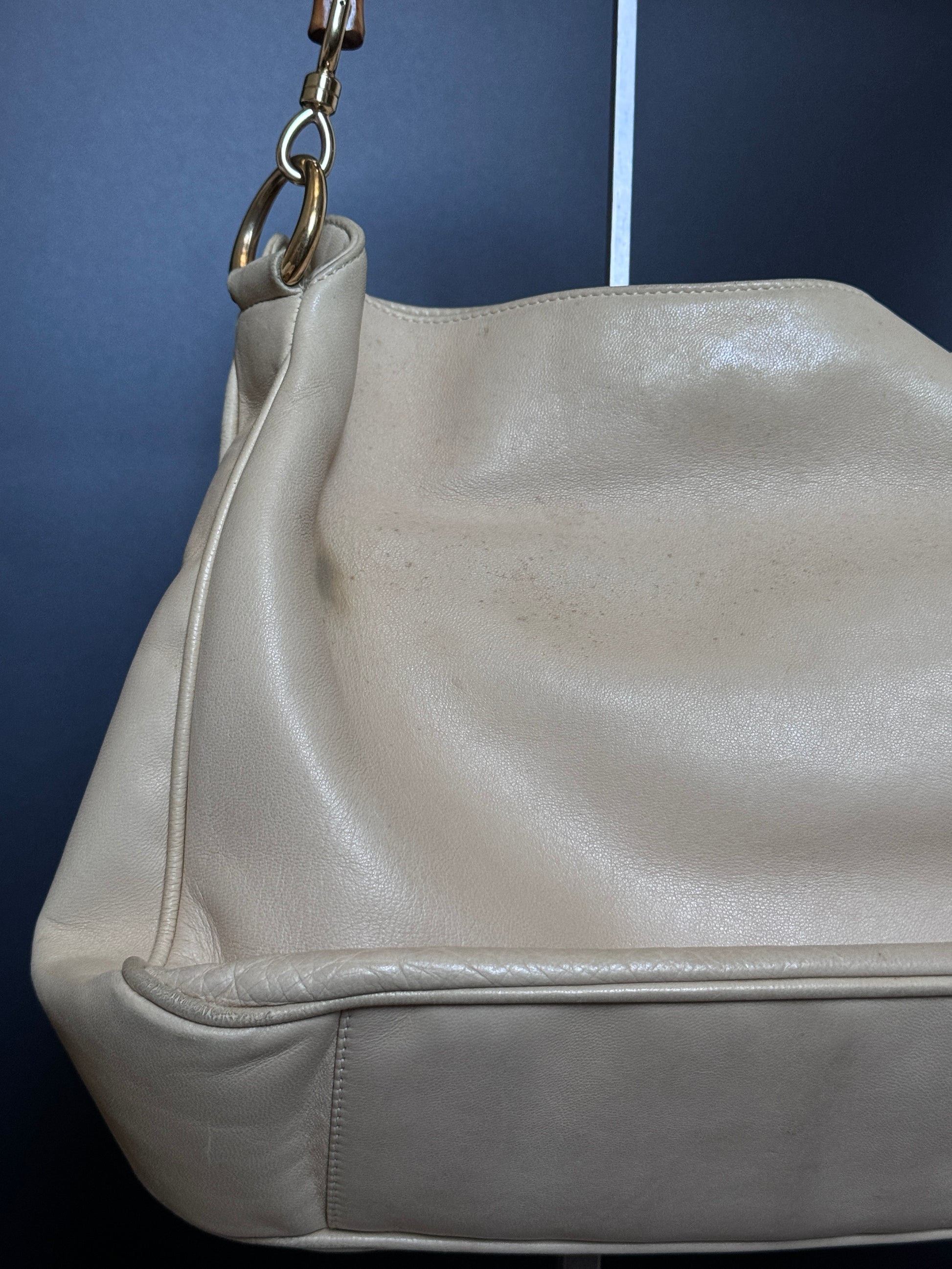 Cream Buttery Soft Leather Bamboo Top Handle Bag